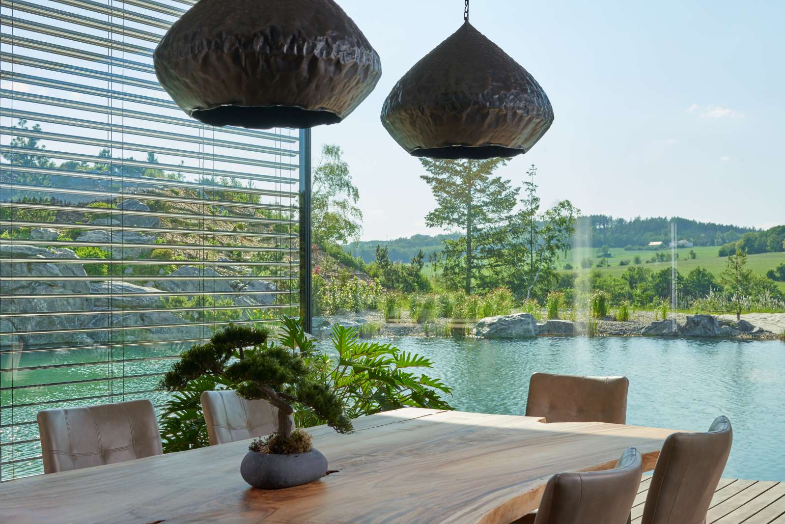dizájnú kültéri napháló mellett. A kültéri árnyékolás kombinálható – az